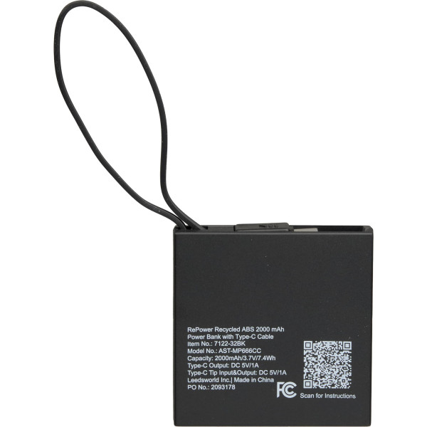 The Recycled ABS 2000 mAh Power Bank with Type-C Cable is a compact and eco-friendly charging solution designed for convenience on the go. With its integrated lanyard-style charging cable and lightweight design, it’s perfect for travel, commutes, or everyday use. This promotional product can be custom branded, making it an excellent giveaway or accessory for showcasing your logo while providing a practical backup power source.