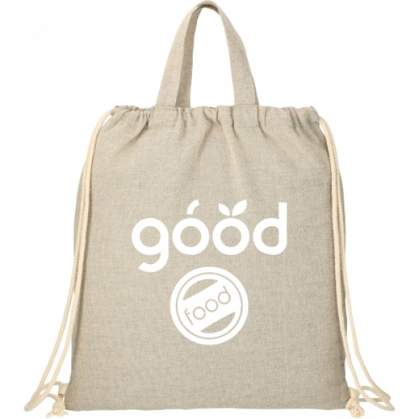 The Recycled Cotton Drawstring bag features a cinch closure and helps promote corporate social responsibility. This custom recycled cotton drawstring bag is manufactured from pre-consumer waste generated by factories during the fabric cutting process. Approximately 70%-80% recycled cotton and 20%-30% rPET. Through a partnership with 1% For The Planet, one percent of sales of this and all EcoSmart products will be donated to nonprofits dedicated to protecting the planet.