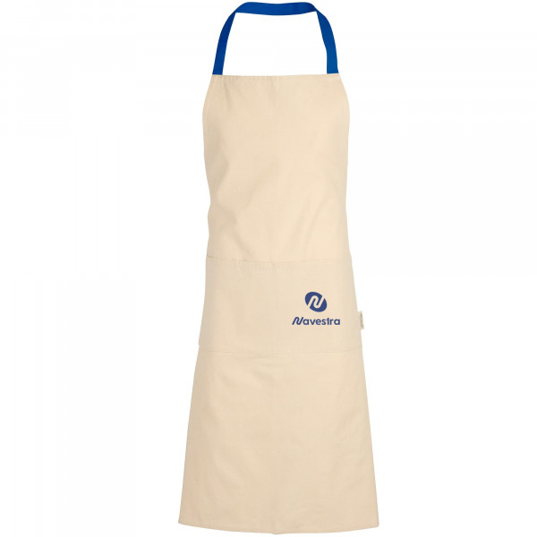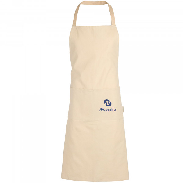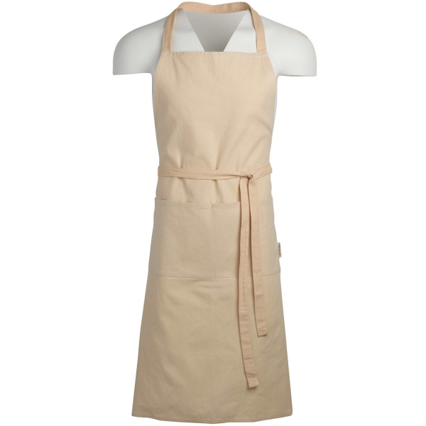 The Recycled Cotton Apron is made from 100% GRS-certified 6oz recycled cotton, blending eco-friendly materials with everyday practicality. With its natural cotton color accented by a bold contrast neck loop, this apron offers both style and protection while you cook, grill, or craft. Its spacious dual pockets keep essentials within reach, while the long tie-back closure ensures a comfortable, adjustable fit. A sustainable and functional choice, this apron makes an excellent promotional product that can be custom branded for lasting visibility.
