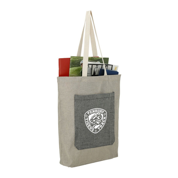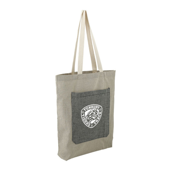The Recycled Cotton Pocket Tote is made from eco-friendly, pre-consumer recycled cotton.