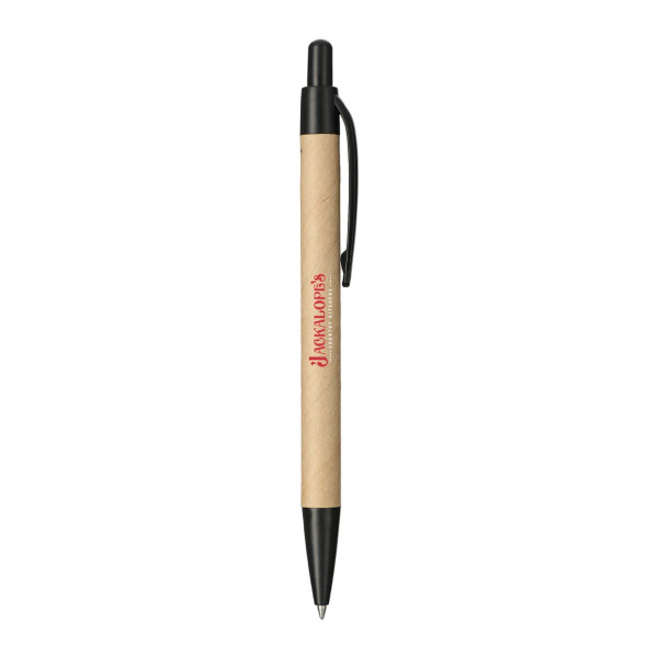 The Recycled Paper Gel Pen features a 100% recycled paper barrel with RPET black accents.