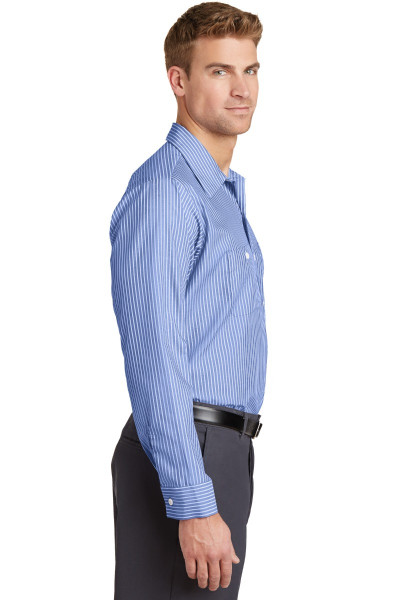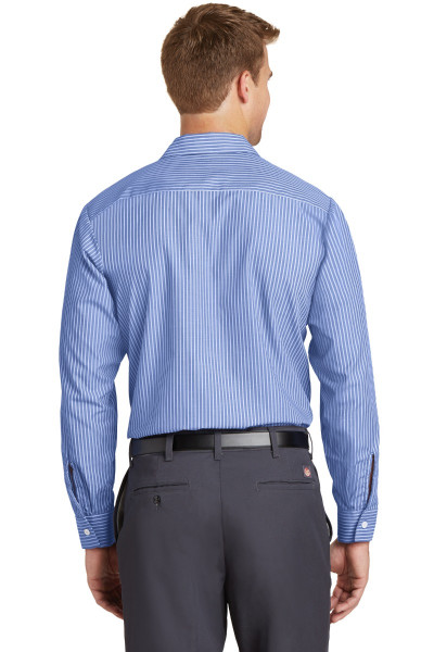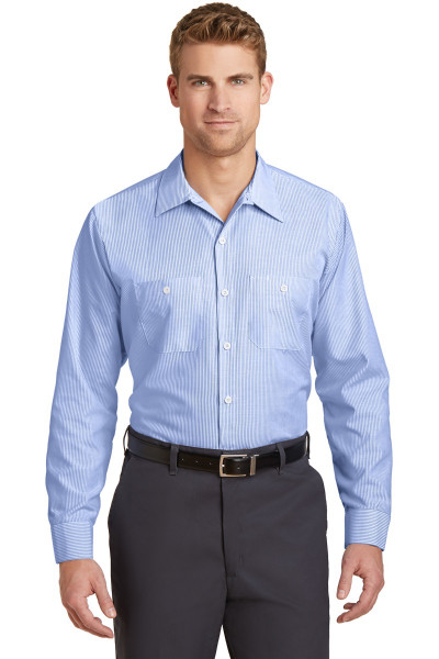 4.25-ounce, 65/35 poly/cotton with Touchtex™ technology for superior color retention, stain release and wickability Yarn-dyed fabric Open collar with sewn-in stays 7 buttons including button at neck Two button-through pockets Bartacked pencil stall on left pocketDetails