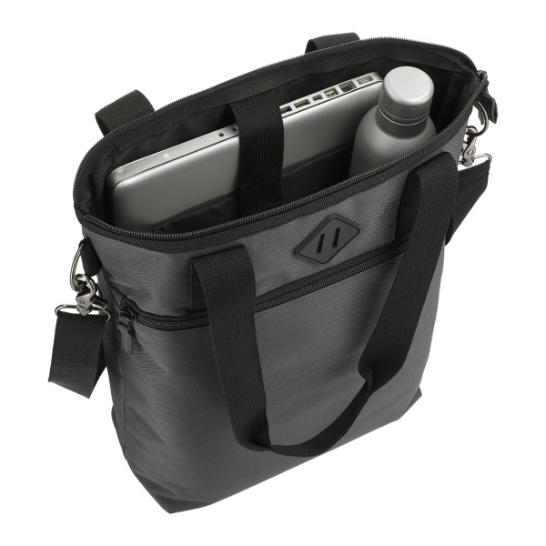This tote features a padded laptop sleeve in the zippered main compartment.