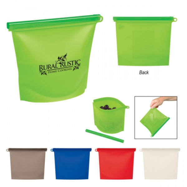 ::Made of Silicone::Holds Up To 4 Cups::Holds Dry or Liquid Contents::Resealable and Reusable::Convenient Loop For Hanging::Meets FDA Requirements::Hand Wash Recommended
