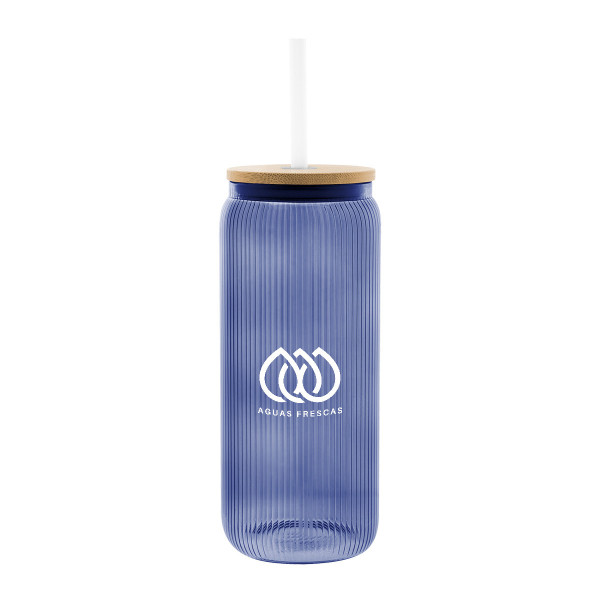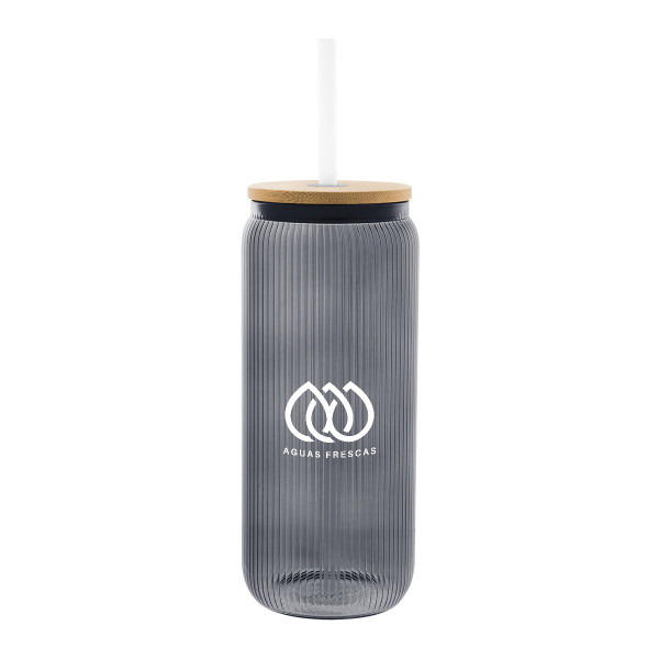 Ribbed Borosilicate Glass Can with Bamboo Lid - 20 oz.