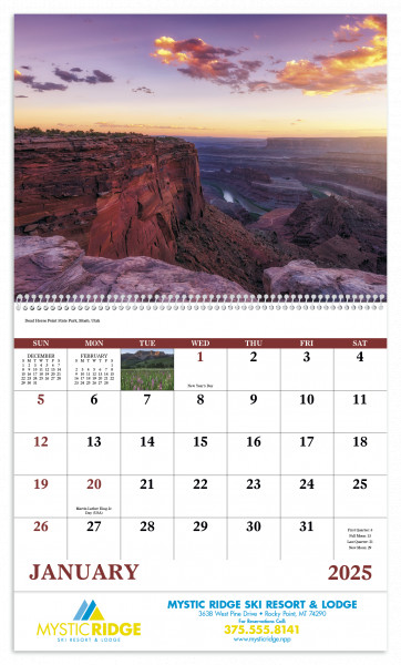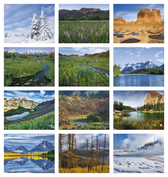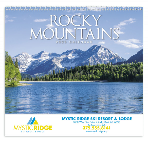 The Rocky Mountains 13- month calendar features photographs of interesting and unique places.