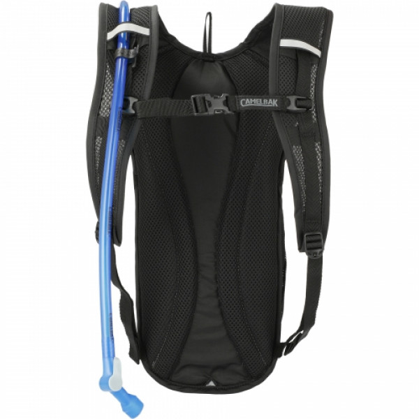 The convenience of external fill in a sleek bike pack. ::The Camelbak Rogue 85oz Hydration Pack features two external pockets for small items like keys, wallet, phone or storage for a shed layer. ::The 2.5L Crux reservoir can be refilled on the fly via the quick-release flap on the front of the pack. ::Includes reservoir. The Back Panel / Harness is made from Recycled Poly Airmesh. ::The Interior Lining / Under Top Flap is made from 135D Poly Oxford Lining, C0 DWR, Solution Dyed, and the Interior Pocket is made from Recycled Poly Pocket Mesh.
