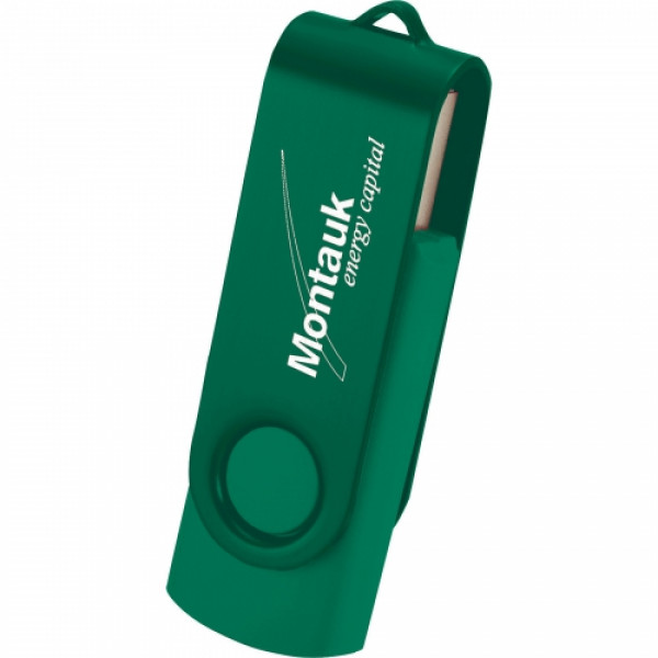 Flash drive folds into a protective aluminum cover. RoHS compliant. Plug and play technology on Windows XP or above and Mac OSX or higher.