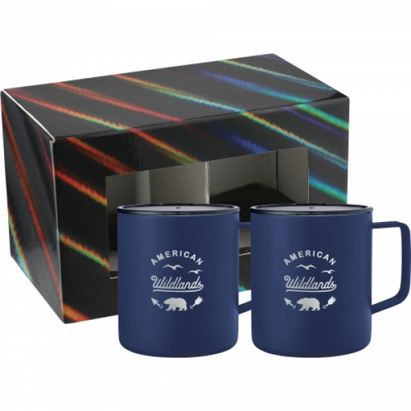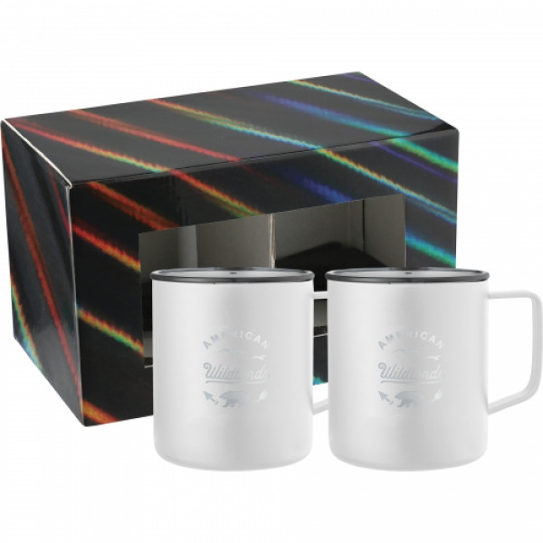 Includes 2 Rover Camp Mug. ::Durable, double-wall stainless steel vacuum construction with copper insulation, which allows your beverage to stay cold for 24 hours and hot for at least 6 hours. ::The construction also prevents condensation on the outside of the piece. ::On-trend, durable powder coating. ::14 oz. ::Gift Box is not decorated.