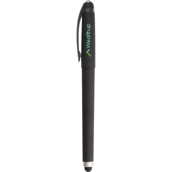 The Rovio Recycled Fidget Stylus Pen blends focus, comfort, and modern functionality into one everyday essential. Crafted with a recycled ABS barrel and a soft touch coating, it offers a smooth, premium grip for extended writing sessions. The cap-off rolling fidget ball provides a subtle way to relieve stress and stay focused, while the built-in stylus makes navigating touchscreens effortless. With long-lasting black gel ink and a sleek, contemporary design, this pen is also an ideal promotional product that can be custom decorated or branded for offices, events, or eco-minded campaigns.
