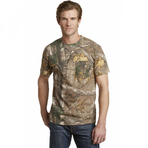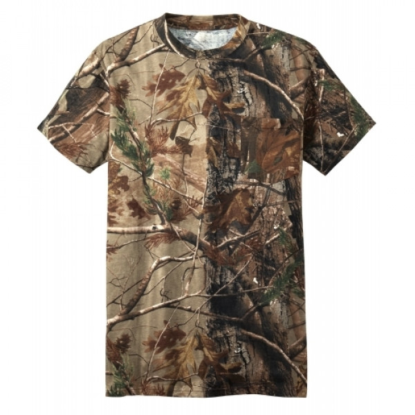 With the convenience of a left chest pocket, this comfortable tee features the Realtree AP pattern. A must have for outdoor sporting events or hunting tournaments!::5.4-ounce, 100% cotton jersey::Shoulder-to-shoulder taping::Coverseamed neck::Side seams::Double-needle sleeves and hem