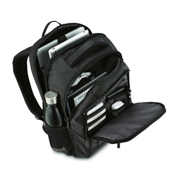 The Samsonite Classic Business Perfect Fit Laptop Backpack is designed for professionals who need both style and functionality. With a dedicated laptop compartment featuring Perfect Fit™ adjustable sizing, it securely holds laptops up to 17 inches. Multiple storage compartments, including a front organizer pocket and side water bottle holder, keep essentials neatly arranged. The padded back panel and ergonomic shoulder straps ensure all-day comfort, making it an ideal choice for work, travel, and daily commutes.