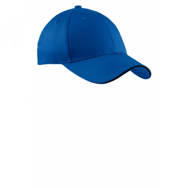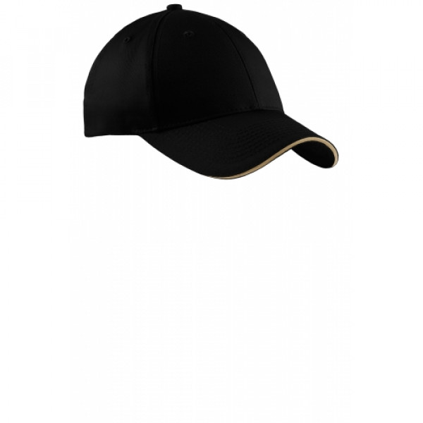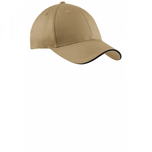 A tremendous value, this cap complements your logo with its contrast sandwich bill.::Fabric: 100% cotton twill::Structure: Structured::Profile: Mid::Closure: Hook and loop