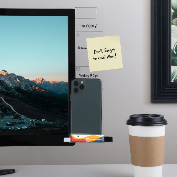 - Transparent acrylic board attaches securely to the side of your monitor with 3M adhesive