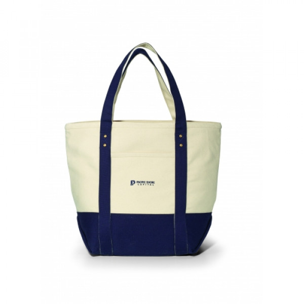 Built for everyday use, this sturdy cotton canvas boat tote combines classic style with lasting durability. With a spacious main compartment, multiple storage options, and reinforced handles, it’s designed to carry everything you need with ease. Antique brass rivets add a touch of timeless detail, making this tote as stylish as it is functional. As a promotional product, it can be custom decorated or branded to highlight your logo while showcasing its eco-friendly materials.