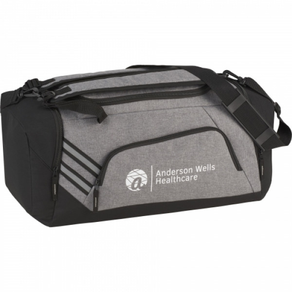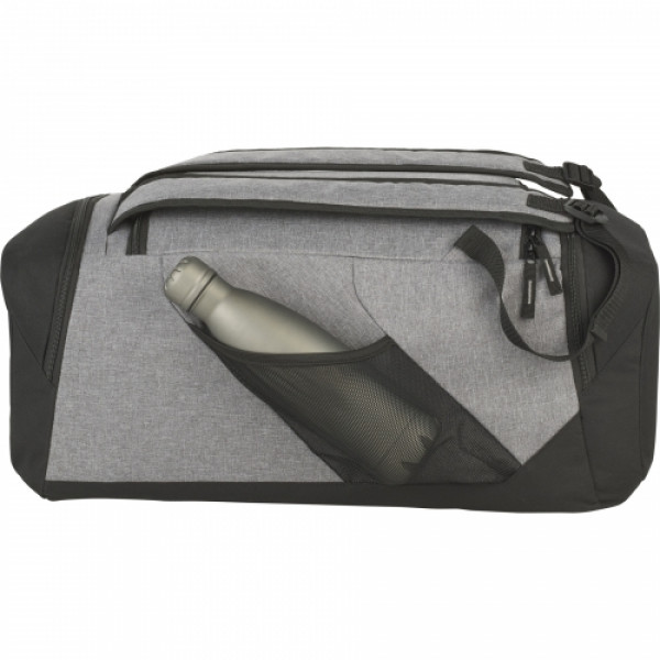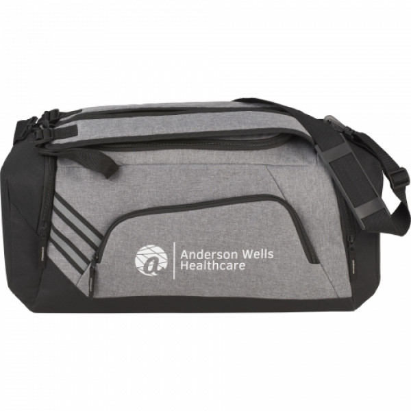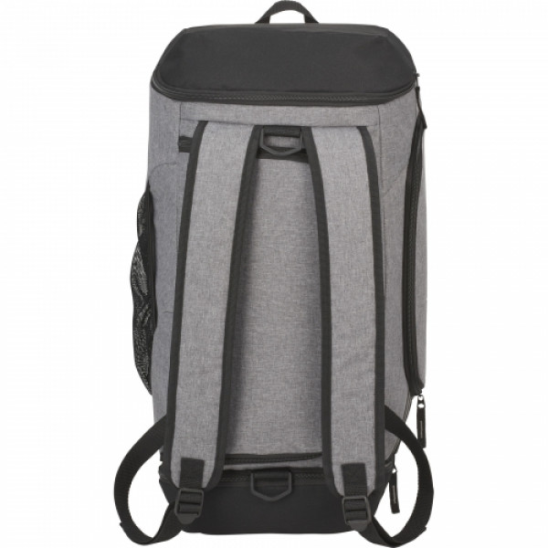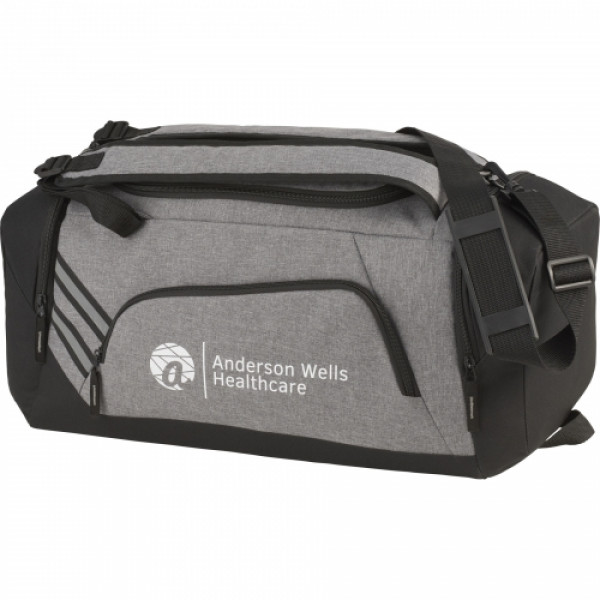 The Sebring Convertible Graphite Duffel gives you the best of both worlds - a duffel AND backpack. ::This sporty convertible duffel features a roomy, zippered main compartment, one side zippered pocket, a side zippered shoe pocket, and a front zippered pocket. ::The back includes a large mesh water bottle pocket.