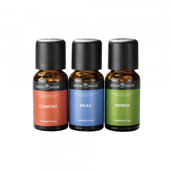 - Create a spa-like atmosphere with the Serene House's Spa Collection. Indulge in 15 ml bottles of our best-selling essential oil blends: Refresh, Comfort, and Relax.