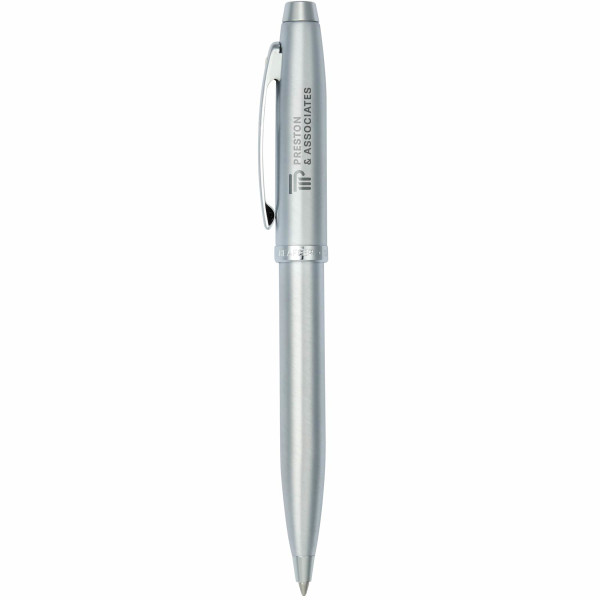 The Sheaffer® 100 Brushed Chrome Ballpoint features a timeless, modern design. Featuring a twist action design with a specially formulated black ink flow for a smooth writing experience and premium gift box.