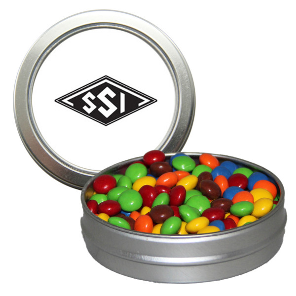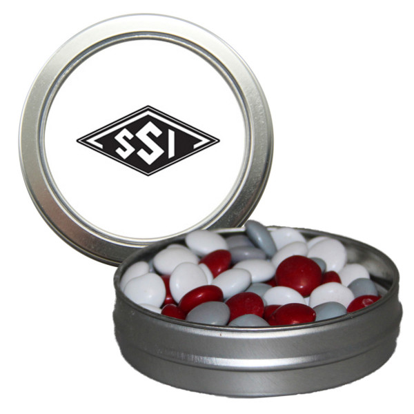 This compact and stylish candy window tin is a sweet way to leave a lasting impression. With a clear top that showcases your choice of treats, it’s perfect for giveaways, client gifts, or event swag. Customize the tin with your logo to create a memorable branded treat.