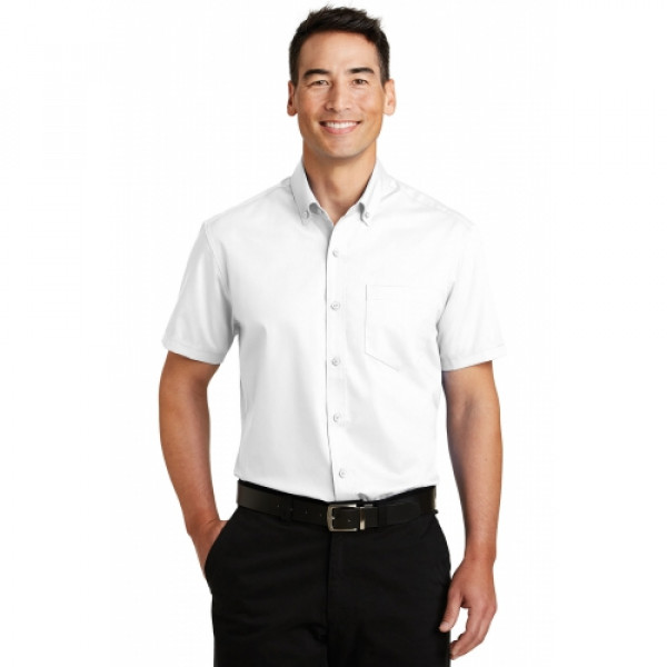 A heavy hitter in performance, our SuperPro Twill Shirt easily resists stains and wrinkles while releasing stains. Designed for comfort, this versatile shirt functions well in almost any work environment from the office to food service.::3.4-ounce, 55/45 cotton/poly::Button-down collar::Back shoulder pleats::Dyed-to-match buttons::Left chest pocket