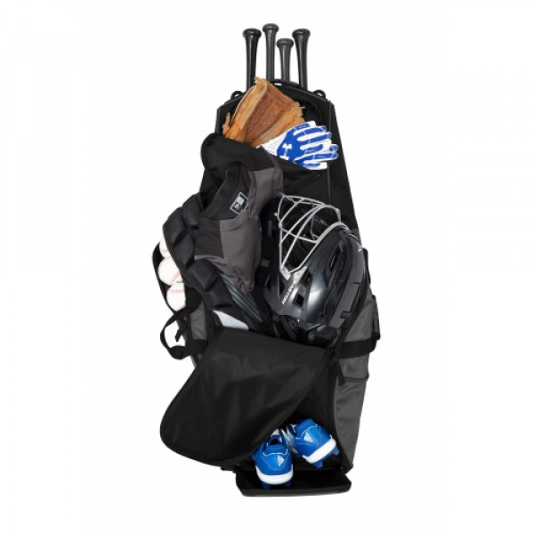 - Holds catcher’s set up to size L–XL, helmet, catcher’s mitt, outfield glove, cleats, sandals/slides