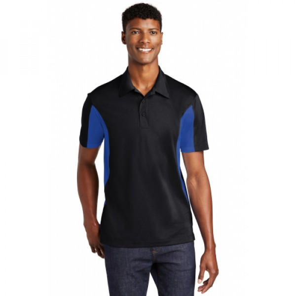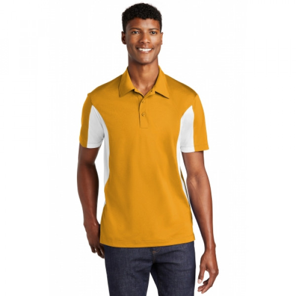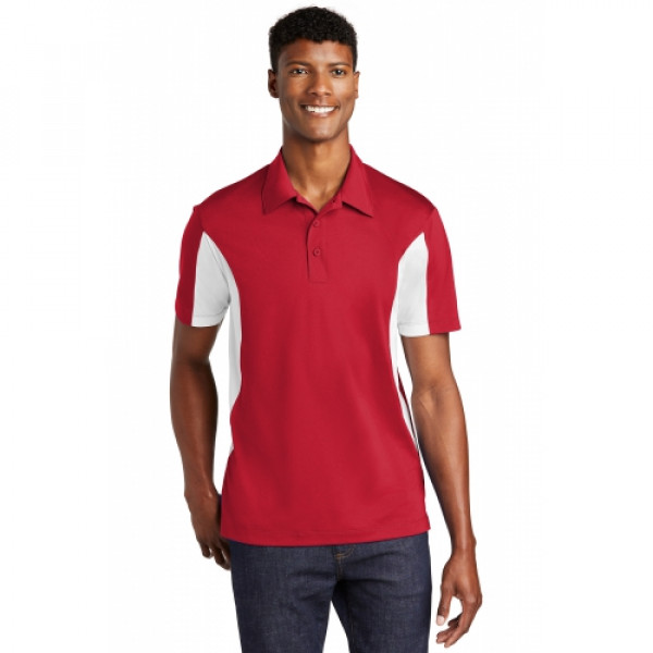 Spirited colorblocking for him and her! Our new sport shirts are made from a flat tricot micropique for smooth, snag-resistant wear. Plus Sport-Wick technology ensures moisture-wicking performance. ::3.8-ounce, 100% polyester tricot ::Snag resistant, moisture-wicking and double-needle stitching throughout ::Tag-free label, taped neck and 3-button placket with dyed-to-match rubber buttons ::Contrast splice panels on sides, sleeves and back collar ::Set-in open hem sleeves ::Side vents