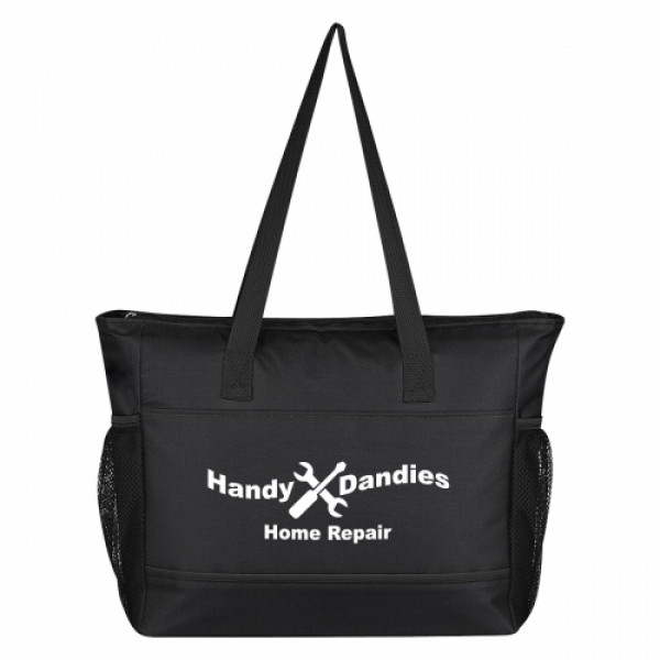 ::Made Of 600D Polyester::PEVA Lining::19" Web Carrying Handles::2 Side Mesh Pockets::Large Front Pocket::Zippered Main Compartment::Spot Clean/Air Dry