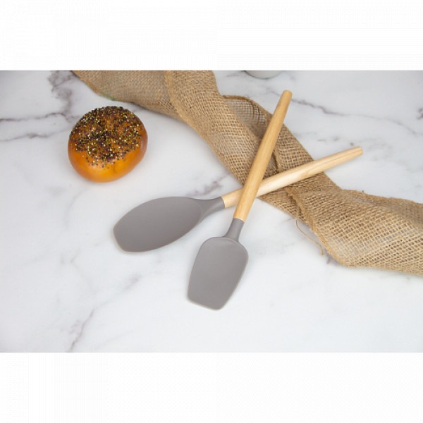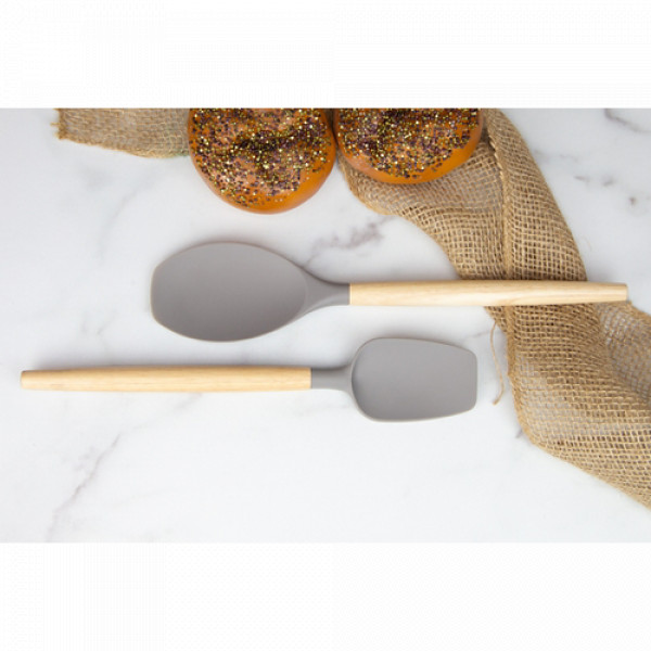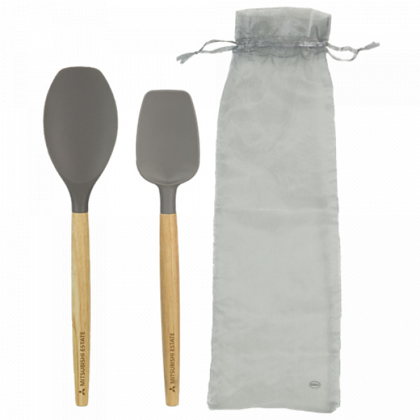 - This kit includes: STIR-Silicone Spatula W/Parawood Handle , SCOOP- Silicone Spoon W/Parawood Handle, and ORGANZA- 4-3/4 " W X 15" L Cinch Bag.