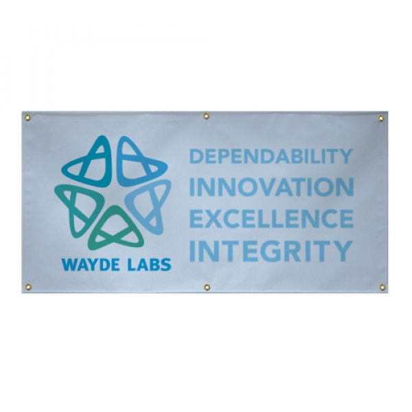 This single-sided banner is light-duty for indoor or short-term outdoor use.::Artwork is printed on Titan™ 10 oz. scrim vinyl::Titan™ 10 oz. scrim vinyl is water-resistant and easy to clean::Choose from multiple finishing styles (our standard 3" pole pocket will accommodate up to a 1.25" diameter pole)::A pole larger than 1.25"in diameter will require a larger pole pocket::Available single-sided only::Custom sizes available (call for quote; restrictions may apply)