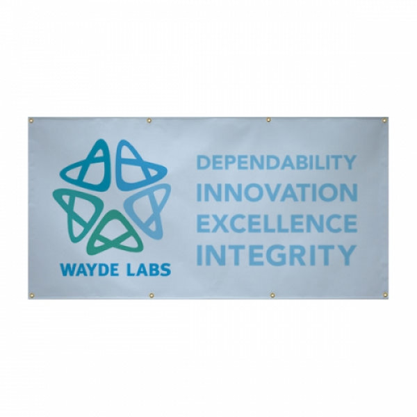 This single-sided banner is light-duty for indoor or short-term outdoor use.::Artwork is printed on Titan™ 10 oz. scrim vinyl::Titan™ 10 oz. scrim vinyl is water-resistant and easy to clean::Choose from multiple finishing styles (our standard 3" pole pocket will accommodate up to a 1.25" diameter pole)::A pole larger than 1.25"in diameter will require a larger pole pocket::Available single-sided only::Custom sizes available (call for quote; restrictions may apply)