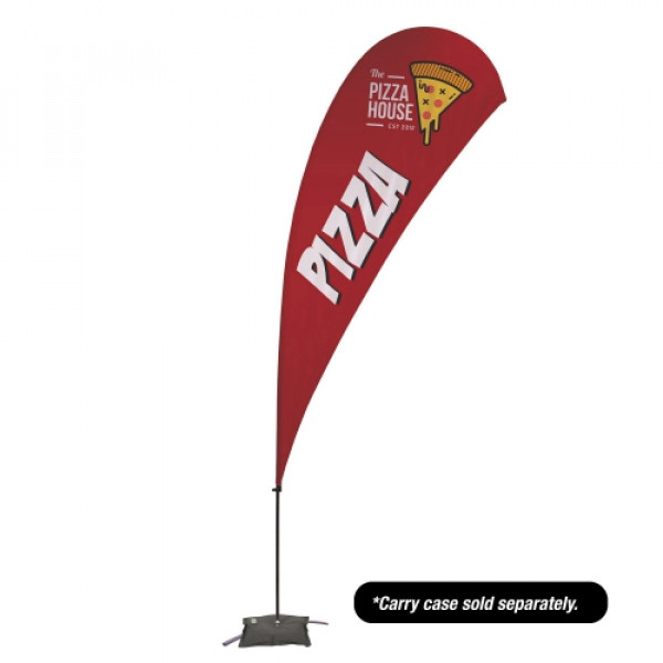 Value sail signs are perfect for large-quantity orders and short-term use.::Classic teardrop shape::Artwork is dye sublimated on super poly knit fabric::A loop attached to the flag connects to an adjustable hook on the pole::Carbon composite poles are strong and flexible::Channeled carbon composite overlay pole construction with a low-gloss black paint finish::Pole segments have double-reinforced carbon fiber ends::Top pole segment is 53", middle pole segments are 53.25" and 41.5", and bottom pole segment is 53.125"::Cross base is constructed of steel::Included ballast can be filled with water to keep the unit weighted down::Carry case sold separately