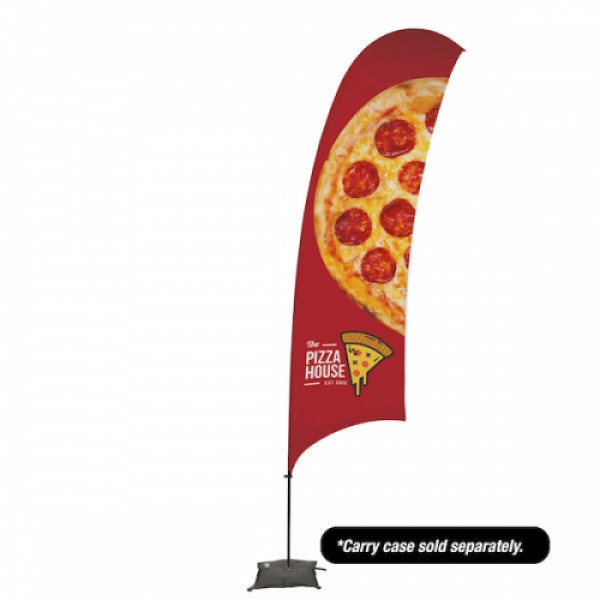 Value sail signs are perfect for large-quantity orders and short-term use.::Due to its feather-like shape, the razor flag style is sometimes called a feather flag::Artwork is dye sublimated on super poly knit fabric::A loop attached to the flag connects to an adjustable hook on the pole::Carbon composite poles are strong and flexible::Channeled carbon composite overlay pole construction with a low-gloss black paint finish::Pole segments have double-reinforced carbon fiber ends::Top pole segment is 53", middle pole segments are 53.25" and 41.5", and bottom pole segment is 53.125"::Cross base is constructed of steel::Included ballast can be filled with water to keep the unit weighted down::Carry case sold separately
