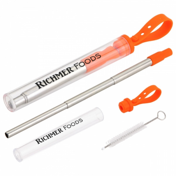 ::3-1/2 inch compact straw telescopes to 8-1/2 inch straw::3-inch cleaning brush included::Comes in clear 4-inch ABS tube with silicone cap and adjustable carrying strap