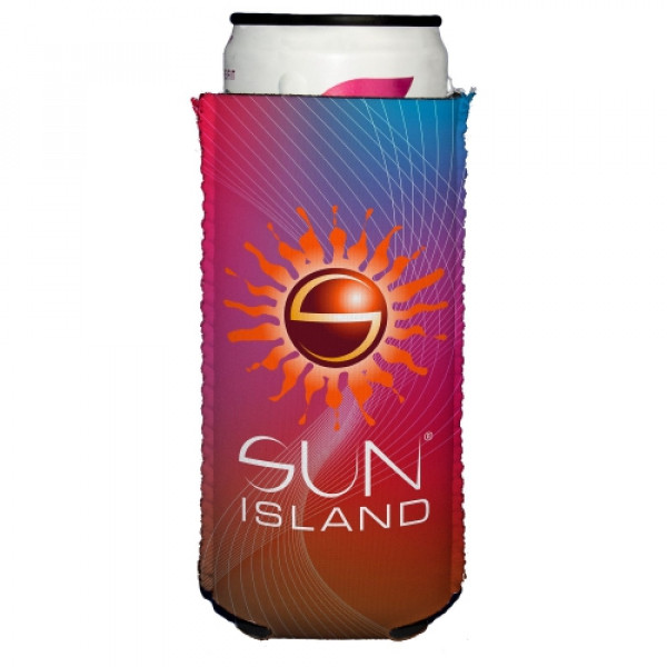::The Slim Full Color Neoprene Can Holder features a vivid wrap-around full color sublimation to provide maximum visibility::It is made to fit a variety of tall and slim can drinks from seltzers and slim beers, to carbonated water, iced coffee, and energy drinks::It is made with neoprene that will keep hands dry and drinks cold. It is latex-free and water resistant::This can holder collapses down to a convenient stackable size making storage easy and convenient::It’s a great item to keep at home, in the car, or bring with to BBQ’s, concerts, or sporting events::Due to the decoration process there will be an approximate 0.5cm unprinted crease on the base of the item. There will be a slight variance per item.