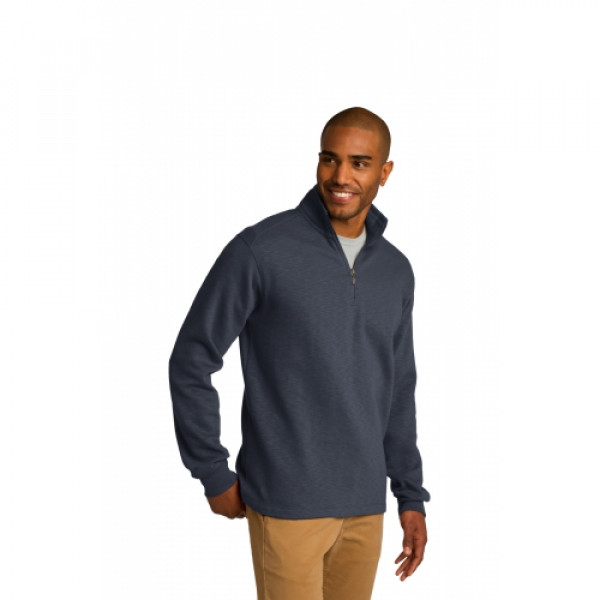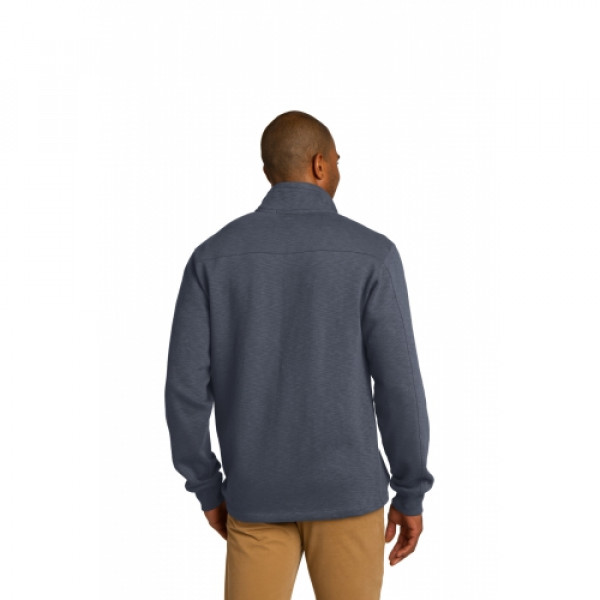 With its slub texture, brushed interior and impeccable style, this sophisticated pullover is a worthy addition to any work wardrobe. ::9-ounce, 65/35 cotton/poly::Rib knit inside cadet collar::Twill tape trim at neck::Front shoulder seaming with back yoke::Reverse coil zipper::Rib knit cuffs::Open hem