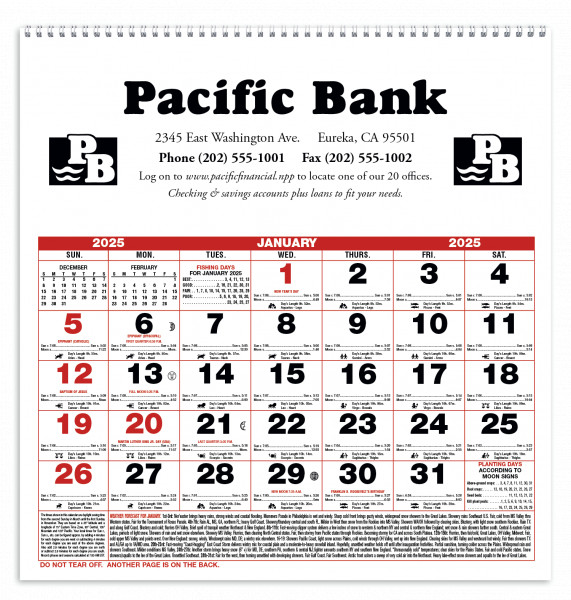 Introducing our Small Almanac Commercial Calendar – your essential companion for staying connected with nature's rhythm while promoting your business! Get your daily dose of weather updates, sunrise and sunset times, and expert planting and fishing guidelines. With the SFI® label, this calendar ensures responsible sourcing of materials. And that’s not all! This 6-sheet calendar features the first 6 months on the front and the second 6 months on the back, along with Julian dates, moonrise times, and Zodiac information. Perfect for the financial, real estate, and agriculture markets, this custom promotional product is a must-have for any nature lover or business enthusiast.