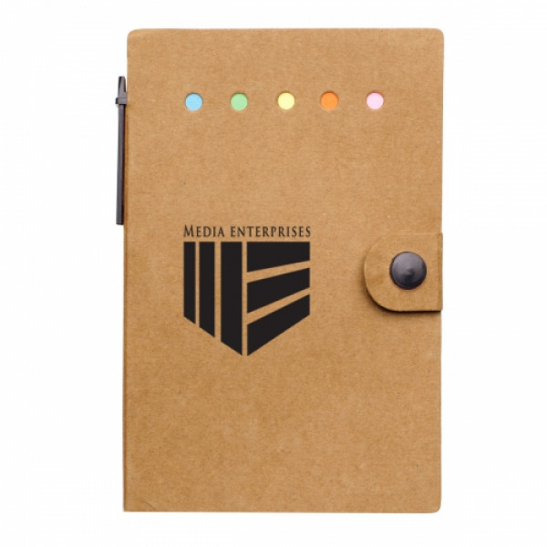 ::50 Page Unlined Notebook::Matching Pen Has Paper Barrel::Pen Holder In Spine::Sticky Notes::Sticky Flags In 5 Neon Colors::Kraft Paper Cover
