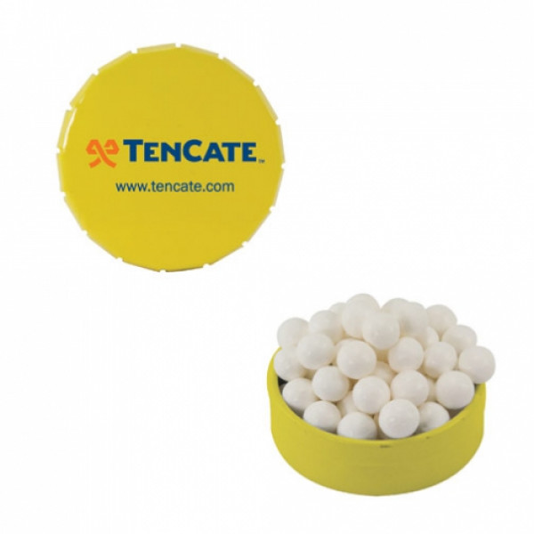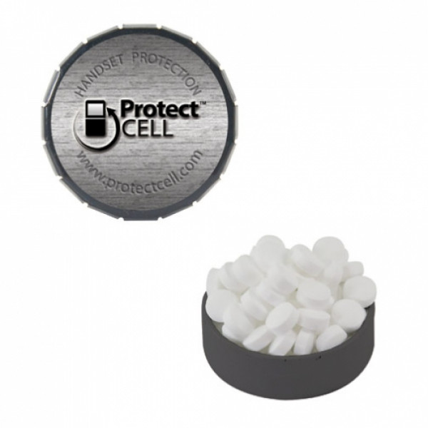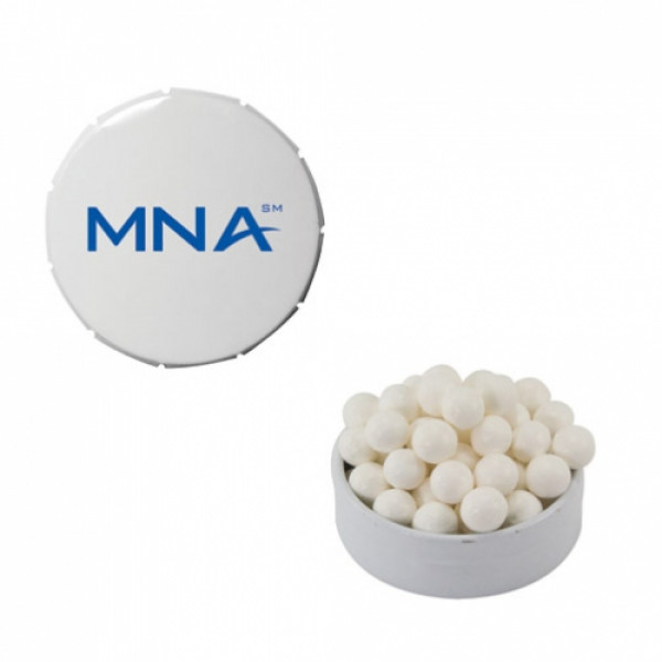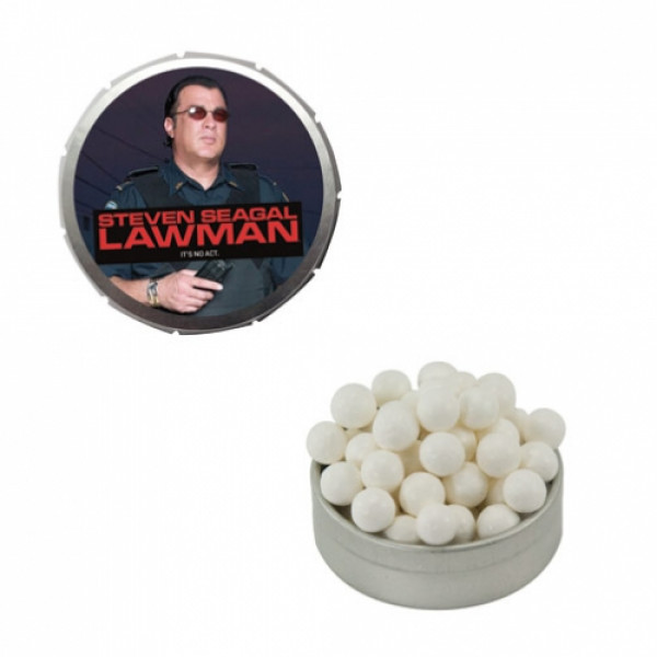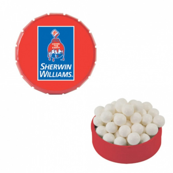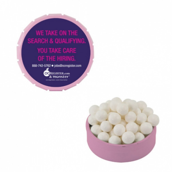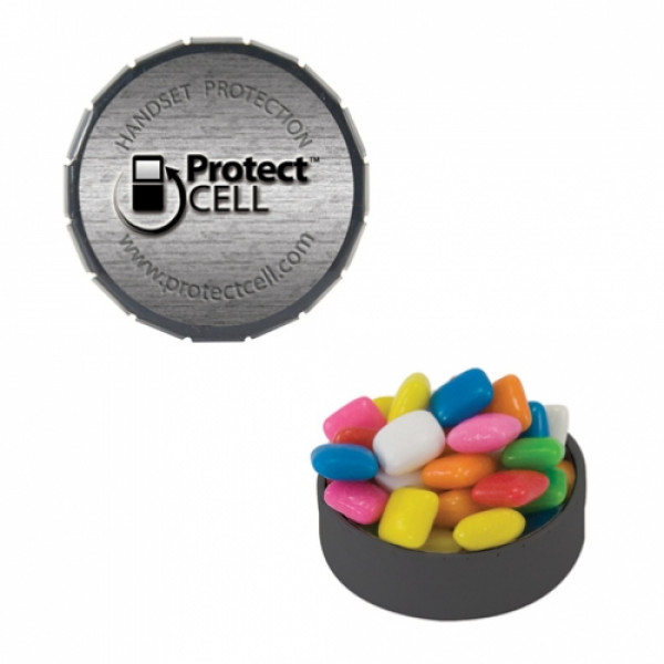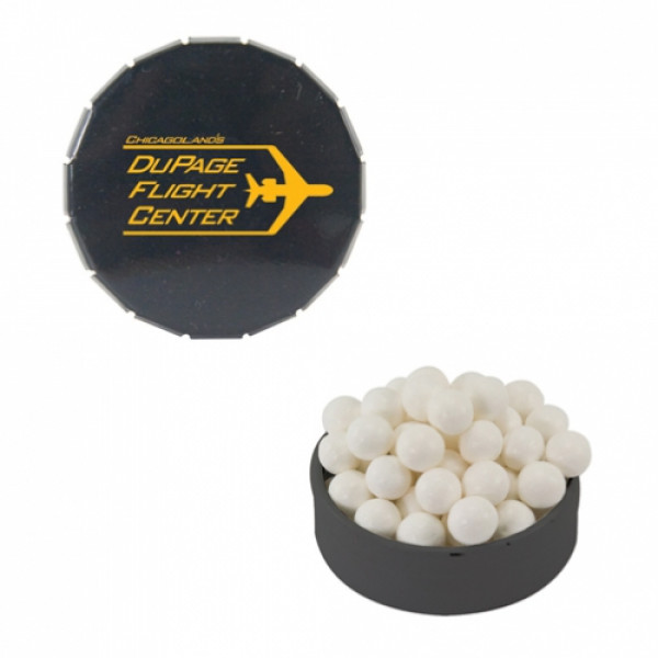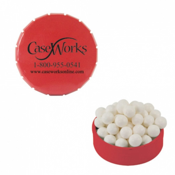 ::Tin Made In China, Candy Made And Filled In USA::Unique Upscale Round Snap Top Tin Filled With Your Choice Of Mints, Candy Or Gum.