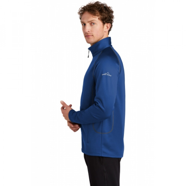 Built for versatility, this smooth-faced, brushed back base layer is sleek, low-profile and is adaptable to everything from outdoor adventures to indoor comfort. Contrast coverstitch details. Reverse coil zippers. Open cuffs and hem. Front zippered pockets. Contrast Eddie Bauer heat transfer logo on left sleeve. Made of 9.3-ounce, 100% polyester fleece.