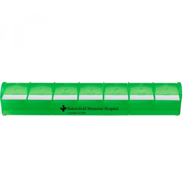 ::Easy to use push-button releases lid::Extra large compartments provide easy access::Embossed letters on the lids for the 7 days of the week