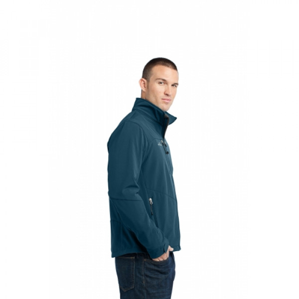 This weather-stopping, three-layer soft shell comes equipped to take on the elements wherever you may roam. ::3000MM fabric waterproof rating and 3000G/M2 fabric breathability rating ::Component loops at back neck and cuffs for securing to other jackets::Reverse coil zippered chest pocket, front zippered pockets and adjustable tab cuffs with hook and loop closures ::Open hem with drawcord and toggles::Contrast Eddie Bauer logo on right chest::Made of 96/4 poly/spandex