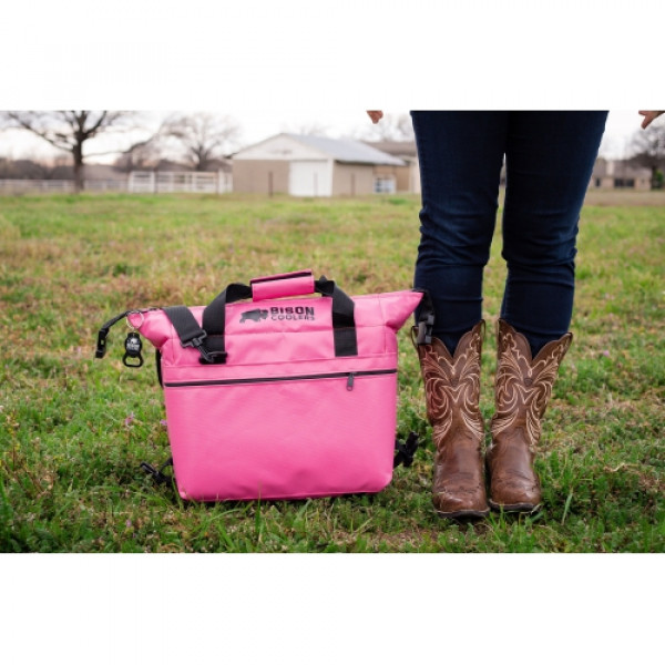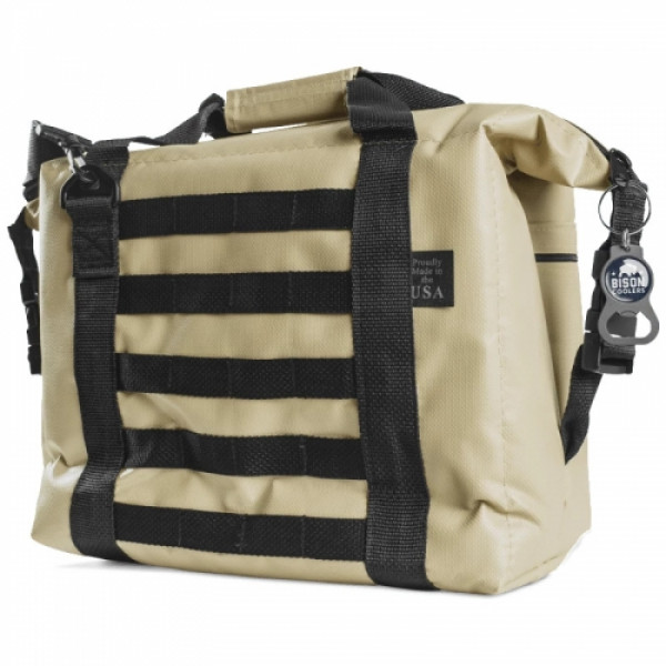 This isn't your mom's old personal soft-sided cooler. This Made in USA cooler packs a serious punch. The Bison SoftPak is tough as nails and keeps ice for up to 24 hours in 120 degree heat. Wrapped in a heavy duty 1000 denier vinyl shell, it's stronger than any other soft-sided cooler, tear resistant up to 375 pounds and UV protected to ensure it doesn't fade. With nearly an inch of insulation, this beverage cooler keeps your drinks frosty cold. Use the exterior pocket for dry items or the MOLLE webbing to add your favorite accessories and turn it into a dove hunting, deer hunting or fishing cooler that's designed just for you.::The only MADE IN USA vinyl soft-sided cooler::Holds 12 cans and about 5 pounds of ice::1000 denier vinyl is tear resistant up to 375 pounds::Twice the insulation of most soft-sided coolers providing ice retention that's twice as good::Side pocket for dry items::MOLLE webbing for customizing with your favorite accessories::Removable shoulder strap