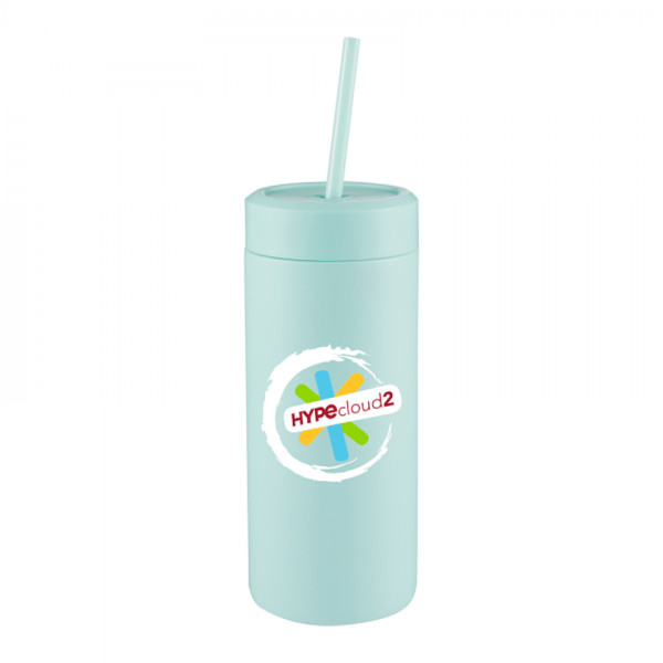The Sol Tonal Recycled Skinny Straw tumbler has a popular skinny tumbler shape and comes in a variety of on-trend colors. Made from 91% recycled stainless steel and includes a 100% recycled PP straw and lid, the Sol is a sustainable upgrade at a great price. Featuring double wall insulation that keeps beverages cold for hours, a durable powder coating that offers sweat-proof sipping, and a screw top lid with silicone straw holder that allows you to sip securely without splashes or leaks. Hand wash only.