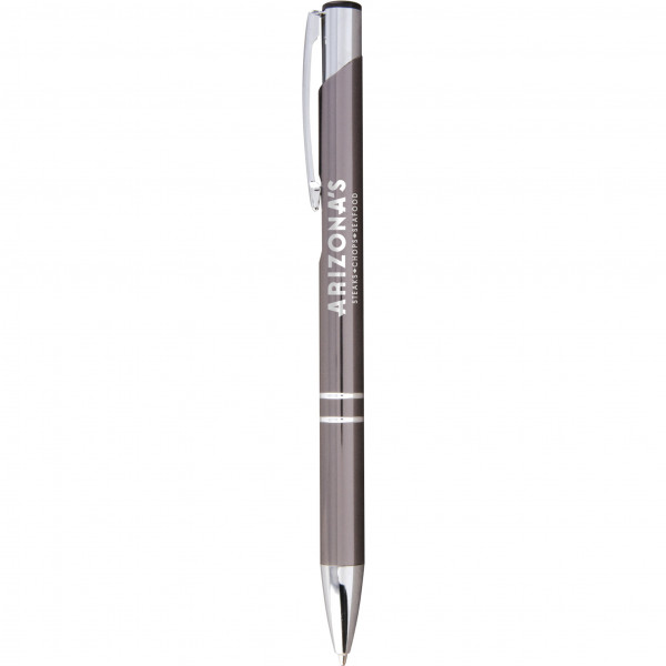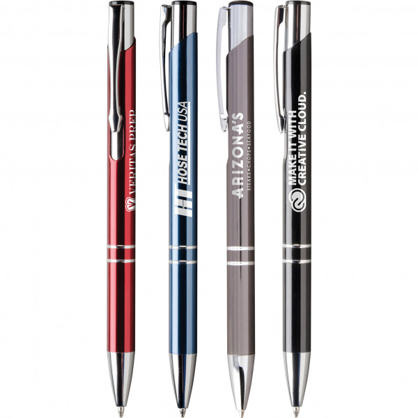 Elevate your brand with a sleek and stylish writing tool that combines elegance with affordability. This gloss-finished metal pen features deep executive colors accented by shining silver details, offering a premium look at a budget-friendly price. Ideal as a promotional product, it can be custom decorated with your logo, making it perfect for corporate giveaways, client gifts, or branded office supplies.