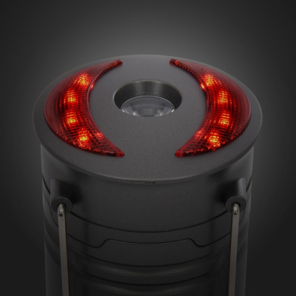 ::3 Extra Bright White COB Strips::Lights Up Automatically When Opened And Turns Off When Collapsed::Slide Up Or Down To Control The Brightness::Five Light Settings – Lantern, Flashlight, High, Red Flashing And SOS::Convenient Hooks For Easy Hanging::Magnet On Bottom::3 AA Batteries Included