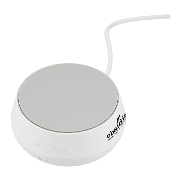 The Sound Machine with Qi 15W Wireless Charger plays 26 different kinds of soothing sounds (including water, birds, train, pendulum, etc.) to help you sleep while it charges your phone.