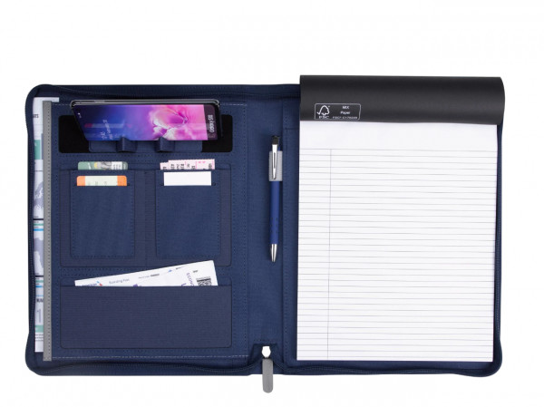 - Zippered padfolio with non-imprinted Souvenir® Armor Pen inserted into the pen loop