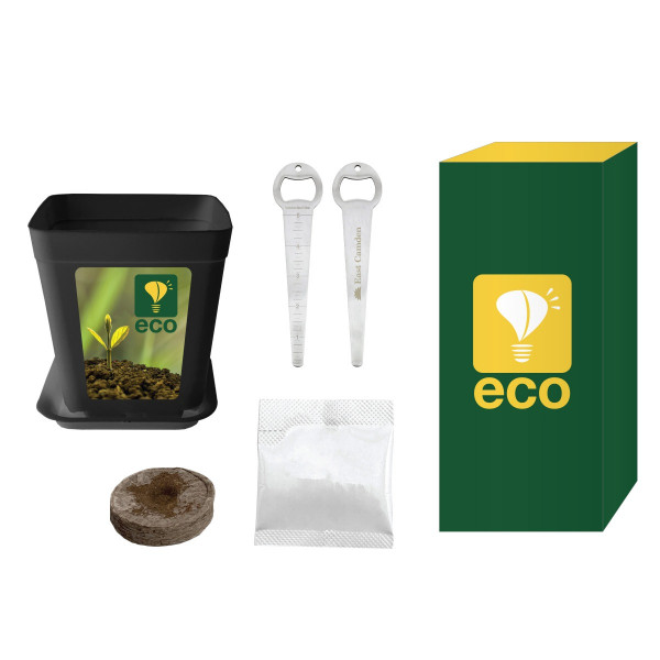 Kit Includes Small Planter, Seed Packet, Soil Pellet And Stainless Steel Seed Depth Tool With Bottle Opener.
