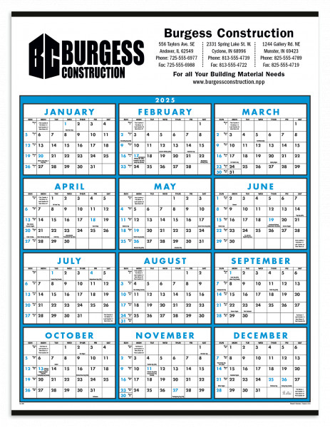 Tinned at the top and bottom, this handy calendar is in a span-a-year format.