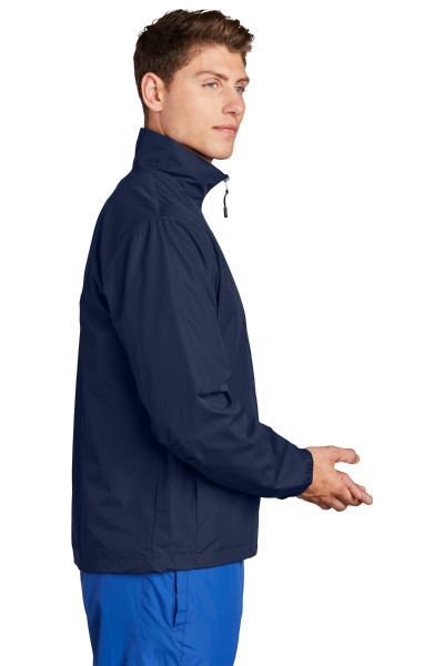 100% polyester shell 100% polyester jersey lining with mesh insets at gussets for added breathability Tag-free label Articulated elbows for greater mobility Half elastic, half self-fabric cuffs for comfort Side pockets Port Pocket™ at left chest for easy embroidery access Drawcord hem with togglesDetails